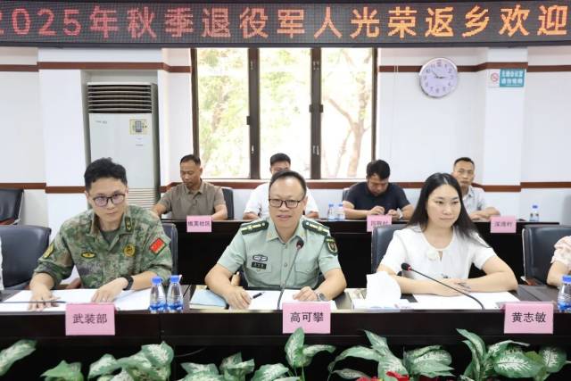 9月18日,我镇举行2025年秋季退役军人返乡欢迎仪式。镇党委副书记、武装部部长高可攀,副镇长黄志敏分别为返乡退役军人佩戴绶带,热烈欢迎退役军人光荣返乡。
