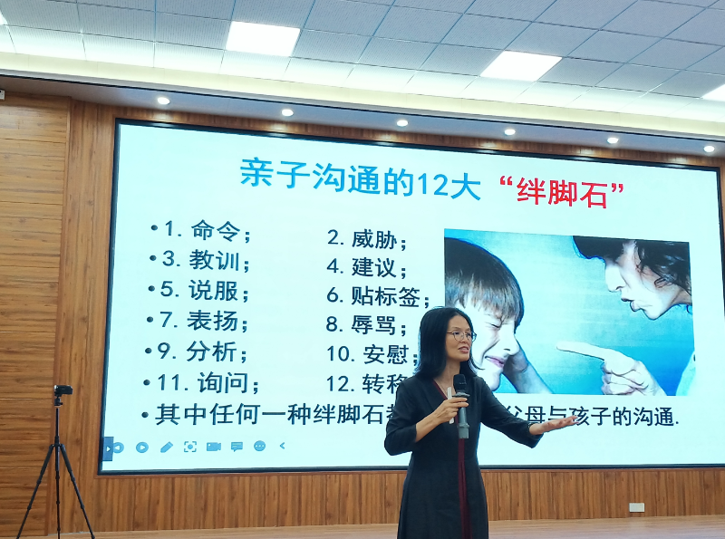 在专题讲座中,教师代表梁剑玲通过现场采访家长,让家长结合案例分享自己的做法,让家长们明白怎样的沟通方式才能形成良好的亲子关系。现场家长表示获益良多。