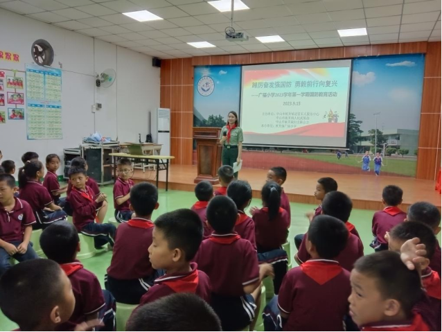 为进一步深化全民国防教育,厚植爱国情怀,切实保障和推动学校素质教育的有力开展,9月15日,广福小学举办以“踔厉奋发强国防,勇毅前行向复兴”为主题的国防教育活动。本次活动由中山市板芙镇退役军人服务中心、中山市板芙镇人民武装部、中山市板芙镇妇女联合会主办,广福小学三年级、六年级全体学生参加。