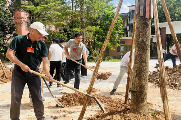 参加活动的领导和嘉宾挥锹铲土、扶树固根,有条不紊地培土堆垄,齐心协力种下一棵棵代表爱和希望的树木。经过一番热火朝天的劳作,一棵棵新栽的树木稳稳地扎根在板芙小学东门。