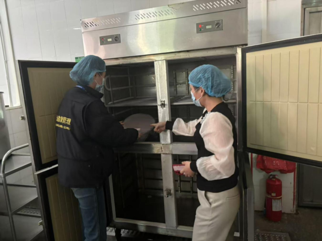 执法工作人员深入校园饭堂食品原料仓库、冷冻食品区域等进行检查,针对米面粮油、冻品冻肉等食材进行严格审查,检查相关食品的生产日期、保质期、包装完整性以及食品标签标识,确保其处于规定的保质期内且储存条件符合标准;对相关食品的送货单、供应商资质材料、相关产品检验合格报告、产品进货采购查验记录进行全面核查,确保所有冷冻食品来源可溯、去向可追,严格把控冷冻食品的安全。同时,对冷冻设备的运行状况进行检查,详细查看温度显示、制冷效果以及设备维护数据,确保冷冻设备正常稳定运行,持续提供符合标准的低温储存环境。