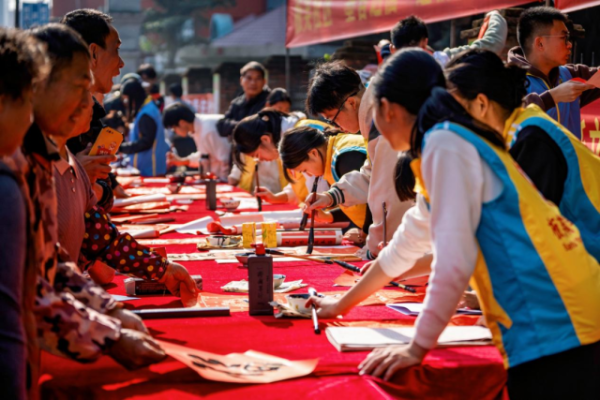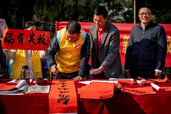 活动现场,青年志愿者们挥毫泼墨,一个个寓意吉祥、饱含祝福的春联跃然纸上,不仅展现了中华书法的独特魅力,更传递了对新年的美好祝愿。