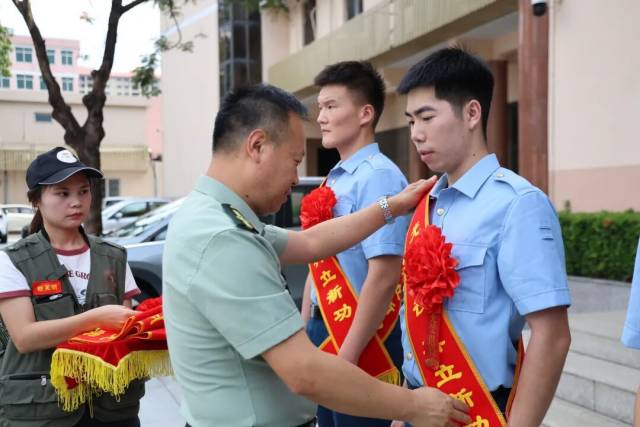 9月18日,我镇举行2025年秋季退役军人返乡欢迎仪式。镇党委副书记、武装部部长高可攀,副镇长黄志敏分别为返乡退役军人佩戴绶带,热烈欢迎退役军人光荣返乡。