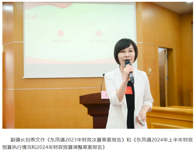 大会听取和审议了《东凤镇“百千万工程”工作报告》《东凤镇2023年财政决算草案报告》《东凤镇2024年上半年财政预算执行情况和2024年财政预算调整草案报告》《东凤镇2024年上半年村镇低效工业园改造升级专项工作报告》《东凤镇2024年水污染治理专项工作报告》,书面审查了《东凤镇2023年度公有企业(不含金融类企业)公有资产管理情况报告》《东凤镇第二中学重建工程及相关腾挪工程建设工作报告》《东凤镇人民政府关于镇十七届人大六次会议议案建议办理情况报告》,表决通过了各项工作报告的决议草案。