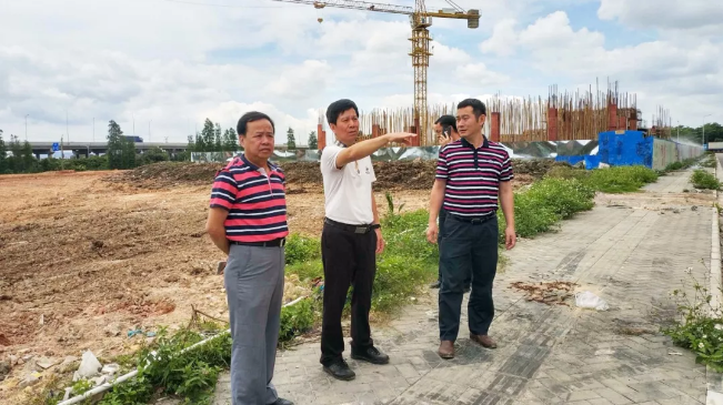 陈有兴、梁建坤、何大庆在工程项目沿线步行查看,对工程建设和后续景观改造等工作进行指导。