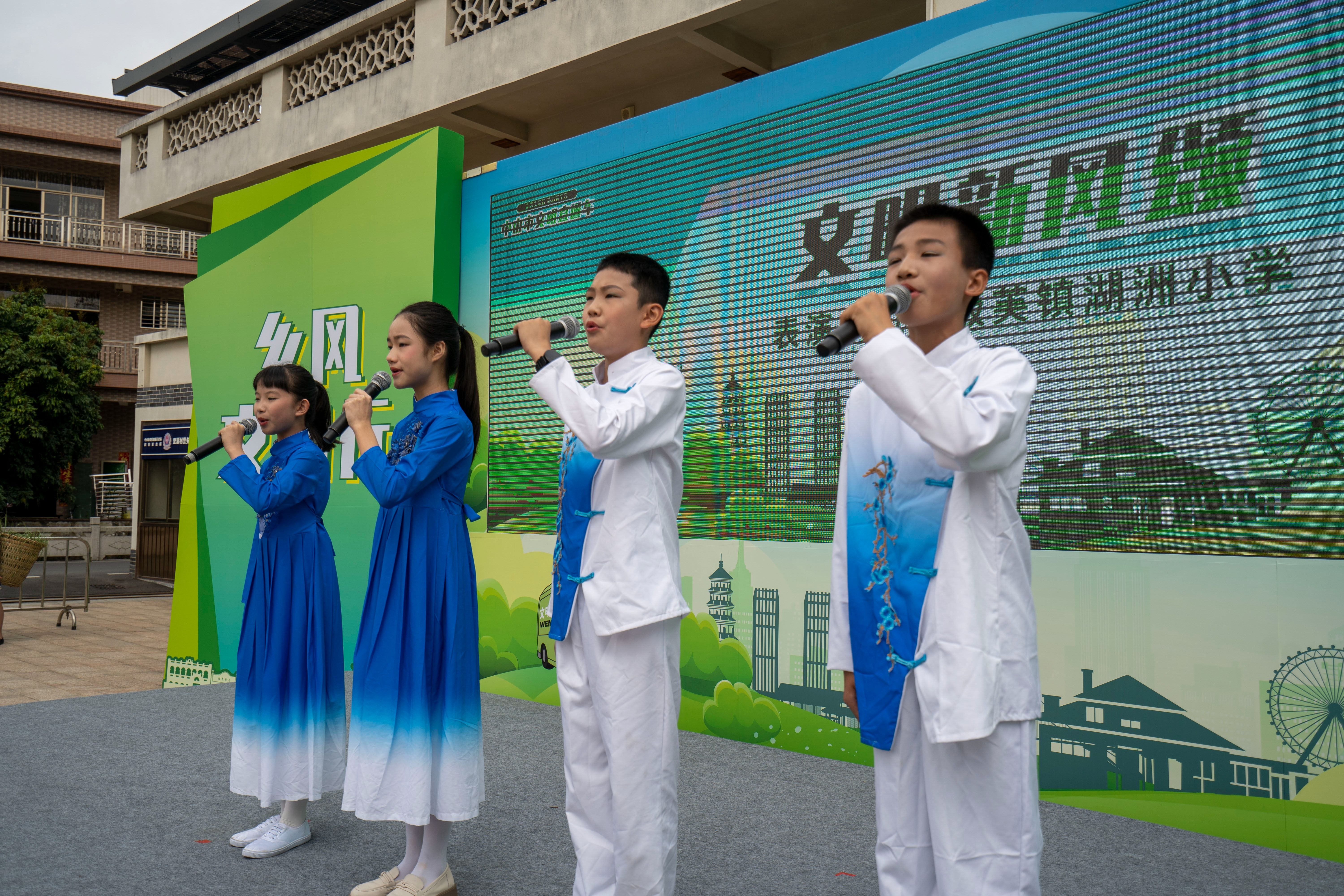 板芙镇湖洲小学的同学们带来朗诵《文明新风颂》。甘亦彤 供图