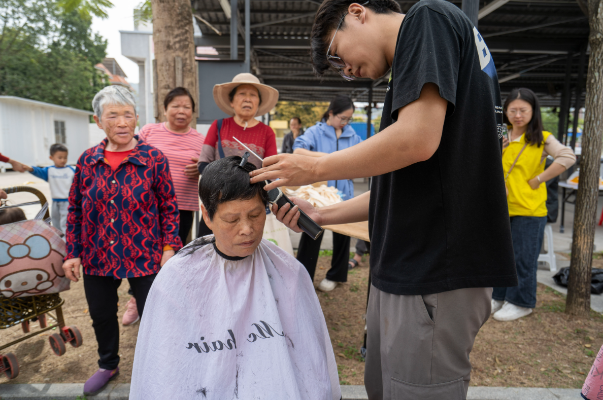 活动当日恰逢农历二月初二,俗称“龙抬头”,现场设置了公益理发摊位。甘亦彤 供图