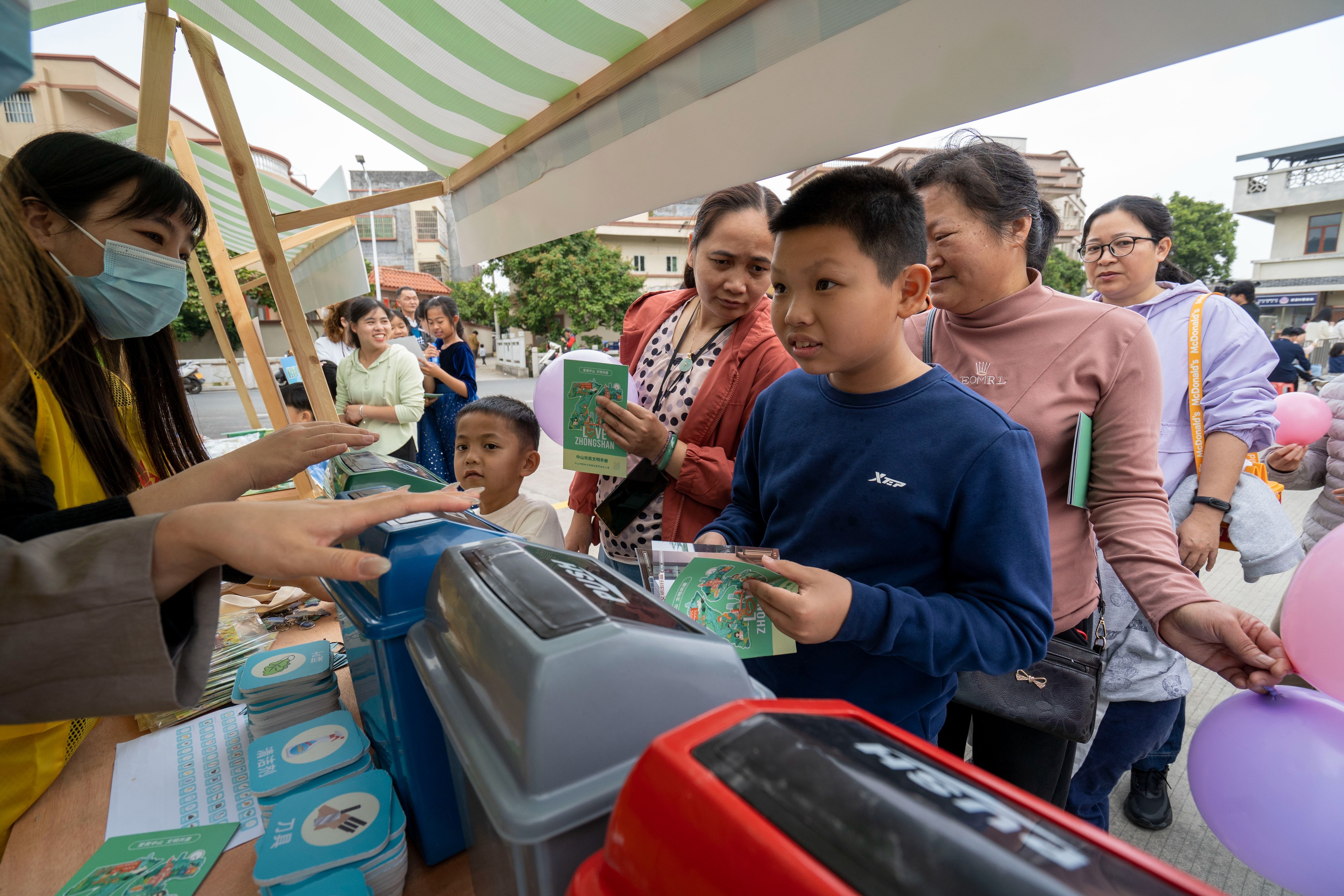 在现场各类摊位前,市民通过游戏互动了解移风易俗、非遗、垃圾分类等各种知识。甘亦彤 供图