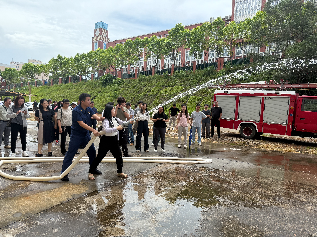 在消防器材使用技巧培训环节,消防讲解员现场演示灭火器、消防水带、防毒烟面罩等消防器材的正确使用方法,参训人员逐一进行实操体验。在讲解员的耐心指导下,参训人员掌握了各类消防器材的使用要领,能够熟练地进行操作。
