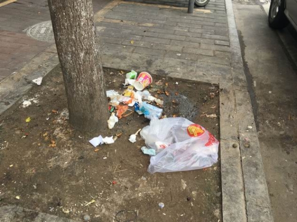近日,记者到镇中心街道走访的时候发现,在文化广场、六百六路人行道等人流比较密集的地方,垃圾也密集起来了,文化广场的草丛中有被随手扔掉的饮料盒、用过的纸巾、一个个烟头、糖果纸。而六百六路的人行道上也偶尔可以看到一些纸巾、烟头,甚至有些人把生活垃圾直接倒到人行道的花基上,吃完的杯面、包装纸等,经过会闻到一股难闻的气味,而沿街的商户表示,十分讨厌这种乱堆垃圾的行为。