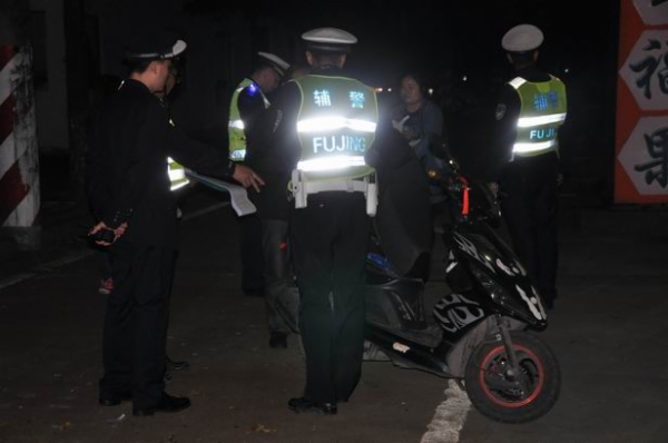 当晚的行动中,民众公安分局组织20多名警力在民众大道北设置检查点,共查处各类违法行为12宗,依法暂扣车辆8辆,其中大型货车1辆,无牌无证摩托车7辆,无发现酒驾、醉驾行为。