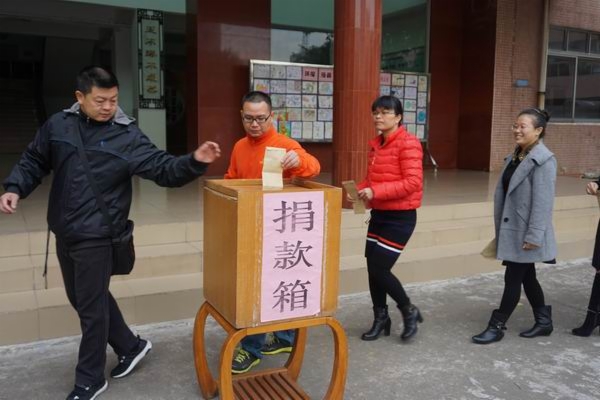 早上课间操时间,民众中学组织全校教师、学生参与捐款活动,教师排好队伍,手持善款,陆续走向捐款箱,将爱心投递。之后学生代表把在班级收集到的善款投入捐款箱。经过统计,学校教师共捐款11888元,学生捐款总数14351.2元,全校合计捐款26839.2元。