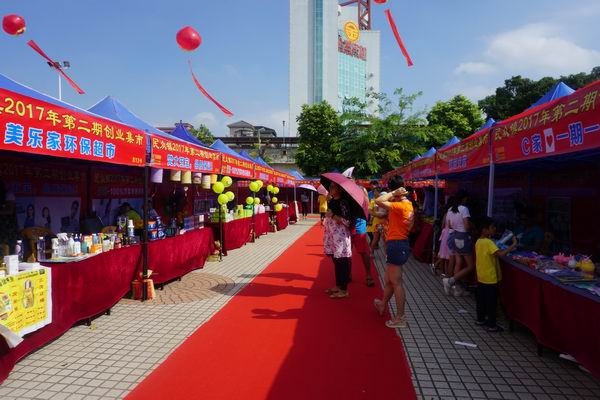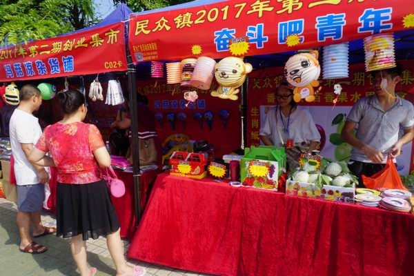 10月1日上午,民众镇文化广场热闹起来,民众镇2017年第二期的青年创业集市活动开锣,活动从10月1日一直持续到5日。