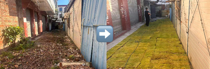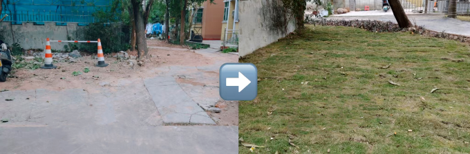本次行动聚焦公共区域环境突出短板,以“铺草复绿”和“路面硬化”为重点,双线并进、同步实施。