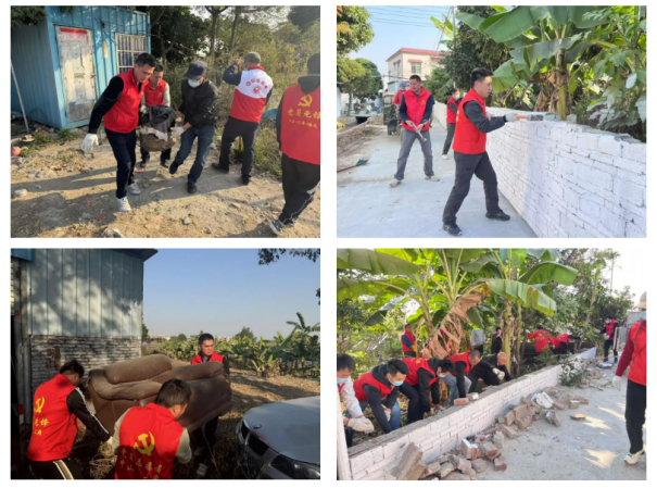 结民村联合市总工会、镇总工会、驻村部门和企业等党组织共计60余人,分别对村内卫生黑点和乱搭乱建进行了攻坚整治,镇党委副书记梁庆明参与。志愿者们积极开展“三线”整治、植树增绿、清拆违建等工作,共清理整治区域内乱搭乱建和乱堆乱放等环境卫生黑点26 处、清理垃圾杂物3.5吨,拆除违规户外广告牌8块,完成 “三线” 整治15处,为打造更加整洁、美观、安全的乡村环境奠定了坚实基础。