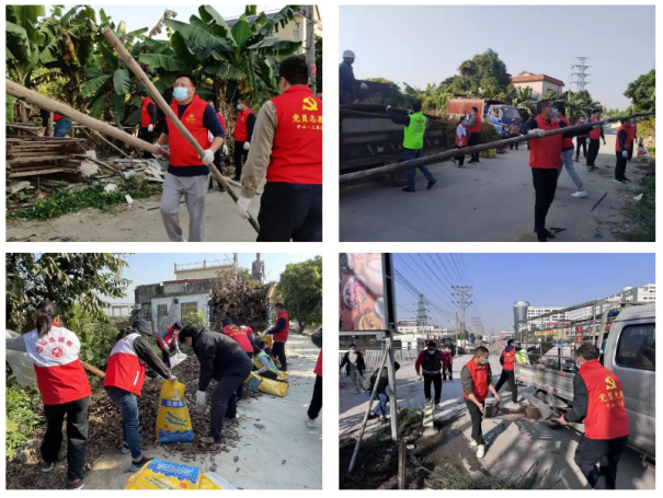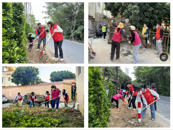 沙栏村党员干部、各群团组织志愿者联合中山市工人文化宫、驻村干部团队32人共同开展“百千万工程”百日攻坚志愿服务活动,本次活动共出动清运车辆4车次,清理各类垃圾约3.5吨;清理环境卫生黑点3处,种植龙眼树苗15棵。