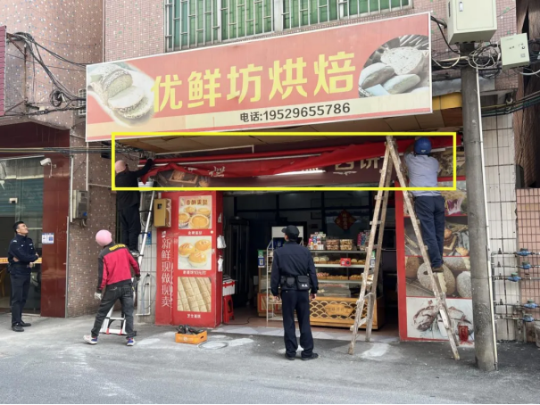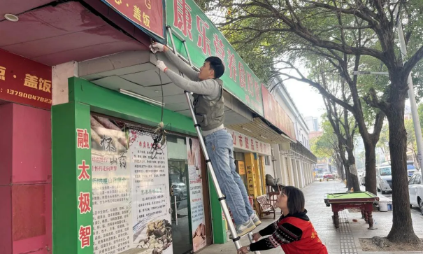 一方面加强人居环境整治宣传,以党建引领,党员带头广泛发动群众,严格落实路长制,营造人居环境治理的良好氛围;另一方面以“刚性政策+柔性沟通”相结合的方式,让商户深刻理解违规广告、遮阳棚存在的安全隐患,做到拆违有力度、执行有温度,得到商户的理解和群众的支持。拆除过程中,有群众自发上前帮忙,积极参与到拆违整治当中。1月2日以来,共整治乱搭乱建、整治户外违规广告等问题64处。
