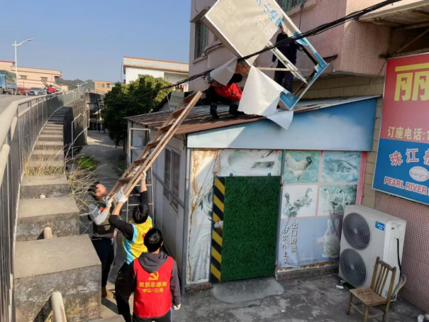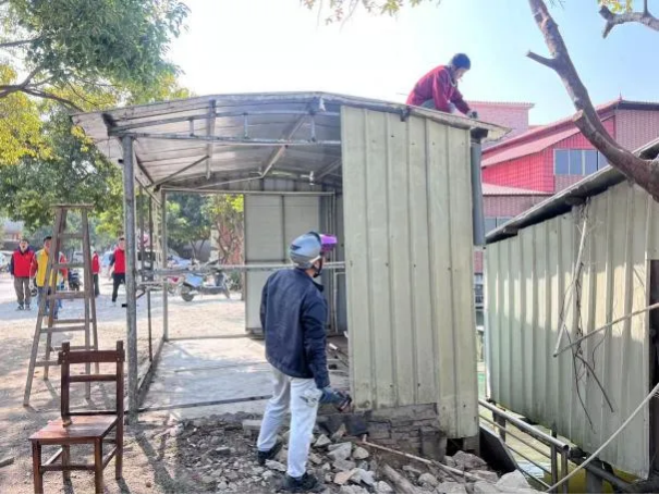 沙栏村党委以“重点突破+全域推进”的工作思路,密切结合“路长制”责任分工,动员商铺、群众等积极配合进行自行整改,落实好“门前三包”责任制,美化周边环境。1月2日-8日,督促农户自行拆除到期田间窝棚5间,统一拆除村内违建锌铁棚6处约120平方米,拆除遮雨篷5个,拆除大型推拉篷5个,清拆沙栏西路刀片广告牌26个。