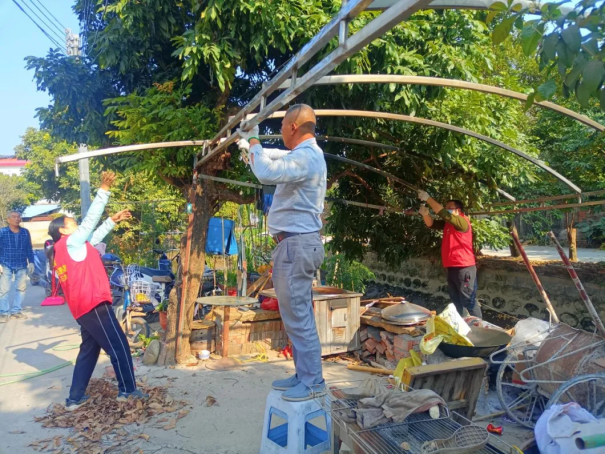1月9日,光明村持续开展党建引领奋战“百千万工程”百日攻坚行动,党员干部和志愿者们发挥“不怕脏、不怕累、肯吃苦、能吃苦”的奋斗精神,对乱搭乱建、杂物杂草、乱堆乱放、小广告等问题进行一轮全面清理整治。本次行动共下沉志愿者40人次,拆除乱搭乱建3处、面积100平方米,劝离违停车辆7辆,整治垃圾乱堆放、“牛皮癣”等卫生黑点5处,清理杂草枯枝、铁皮垃圾共2吨。带动村民自觉拆除遮阳棚,形成“干部带头干、党员冲锋干、群众合力干”良好氛围。