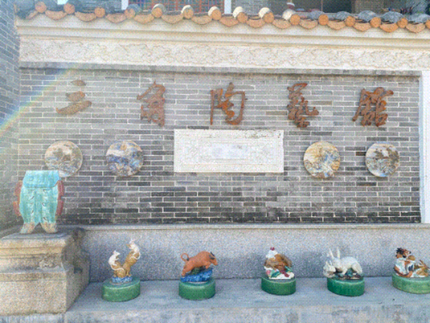 在蟠龙村,有一家保留了传统建筑风格的青砖黑瓦“馆子”——三角陶艺馆,馆长欧远朝平时喜欢收藏和创作石湾陶艺品。推门走进陶艺馆,馆内摆设着惟妙惟肖的非遗文化石湾公仔,它们设计理念源于民间的陶塑艺术,是民众生活方方面面的缩影,凝聚了当时社会的生产情况、风俗习惯与生活审美等,具有一定的历史价值和艺术价值。馆内还设有石湾公仔培训室,不定期开展“乐陶陶”非遗传承课堂、石湾公仔鉴赏以及制作体验活动等。更是结合三角本地文化开展接地气的非遗传承课堂,让更多青少年儿童了解石湾公仔非遗文化。