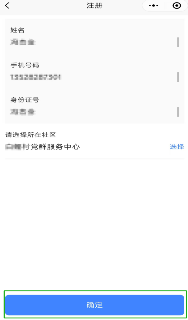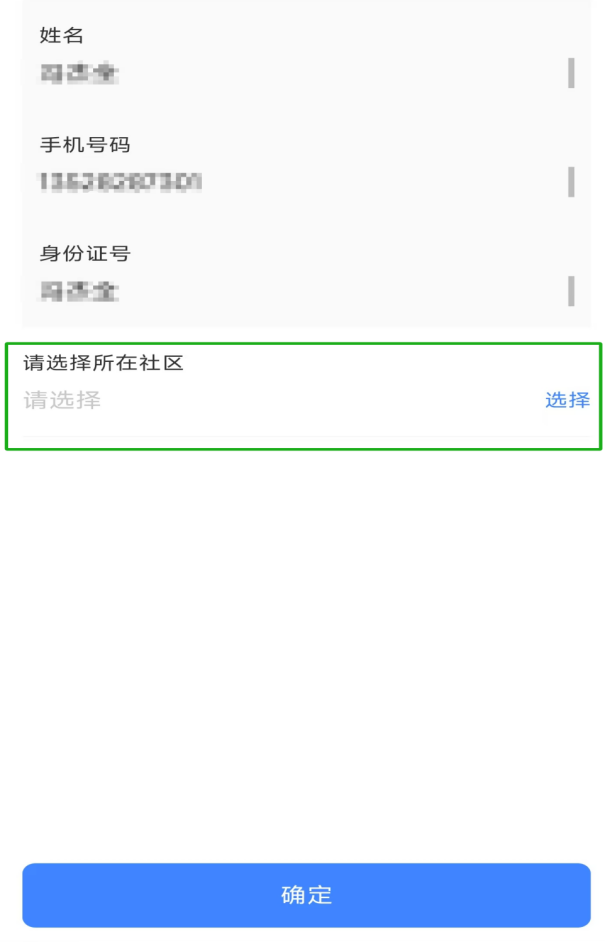点击选择所在社区→点击确定(可参考图七、图八步骤顺序)