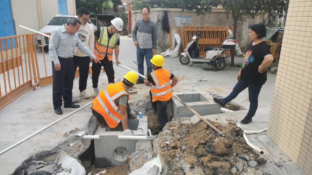 党支部书记杨满芽(左一)深入镇区督导农村污水治理