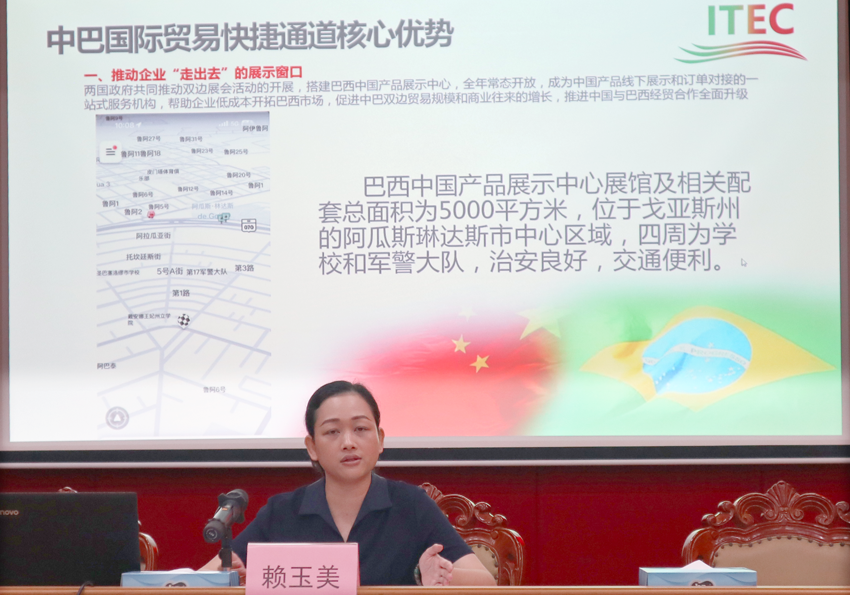 会中,中巴国际贸易快捷通道发起人、中方工作组执行组长赖玉美女士以及团队为到场企业详细介绍了国际贸易快捷通道所涉及的整体情况,包括打造一站式海外服务体系,以及为两国各级政府和企业提供双边贸易交流、展厅展示、跨境电商、海外投资、海关、税务、物流、金融以及法律等支持,实现企业无忧出海。