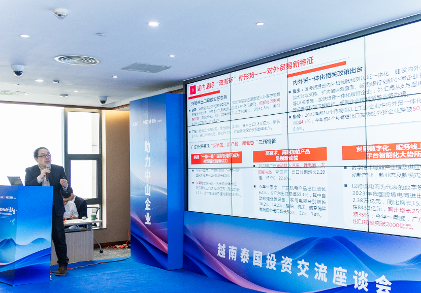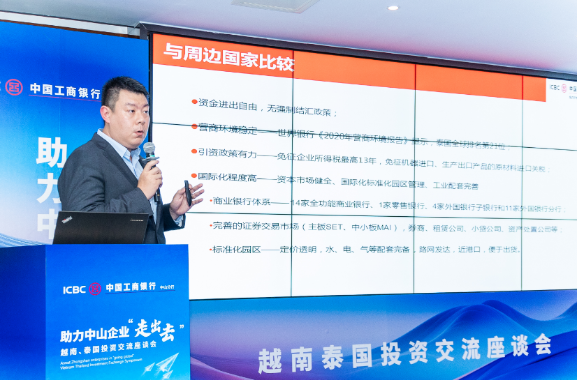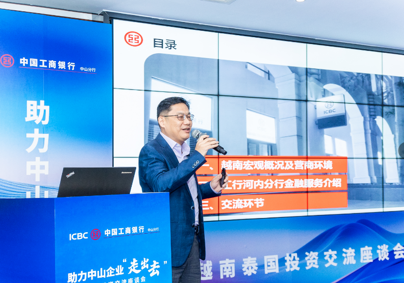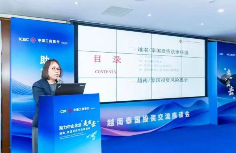 5月21日下午,由中山市商务局、中山市司法局指导,中国工商银行中山分行、中国出口信用保险公司中山营业部联合主办、工银泰国、工行越南河内分行、中山市律师协会支持的助力中山企业“走出去”泰国、越南投资交流会成功举办。来自我市依顿电子、建华管桩、伊莱特电器等近50位企业家代表出席,“政银保企”四方共同探讨中山企业“走出去”的机会与挑战。