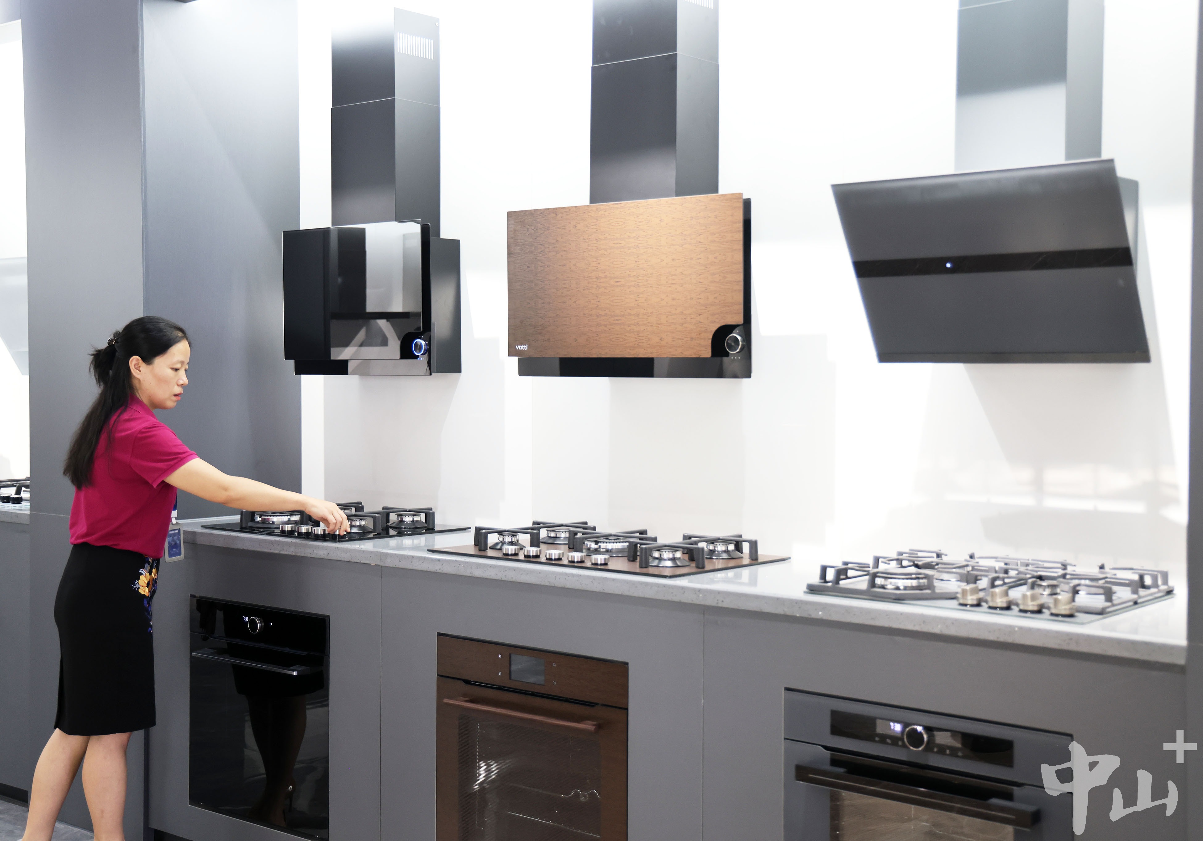 走进百得厨卫的展厅,烟机、灶具、热水器、烤箱等厨房家电让人目不暇接,造型时尚,款式多样,主打黑色。“这款吊绳烟机上市一年多时间,在欧洲和南北美洲卖得很好。”刘成华告诉记者,国内市场的烟机多是壁挂式,而该款烟机充分考虑国外消费习惯,采取垂吊方式安装,多出现在面积较大的厨房及开放式厨房。同时,该款烟机还具有WIFI功能,消费者在回家的路上或其他情况下,通过手机小程序,提前开启烟机,使厨房空间保持舒适的空气状态。