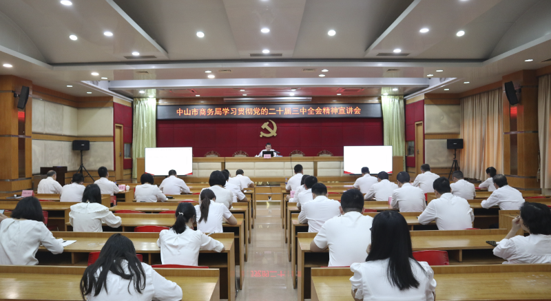 11月8日上午,市商务局党组书记、局长黄识航,以“深入学习贯彻党的二十届三中全会精神”为题,为全体党员进行了专题宣讲,商务局全体干部职工参会。