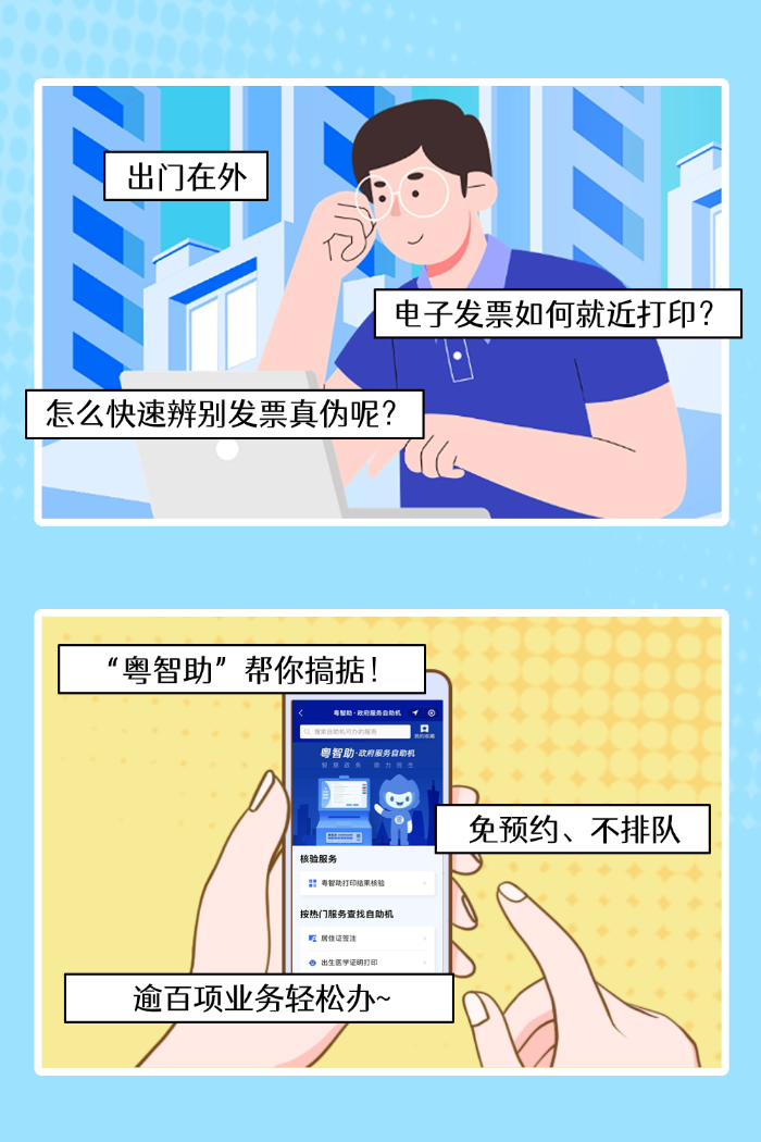 第一步:进入“粤智助”界面,下拉或搜索找到【我要打印增值税电子普通发票】,点击进入。