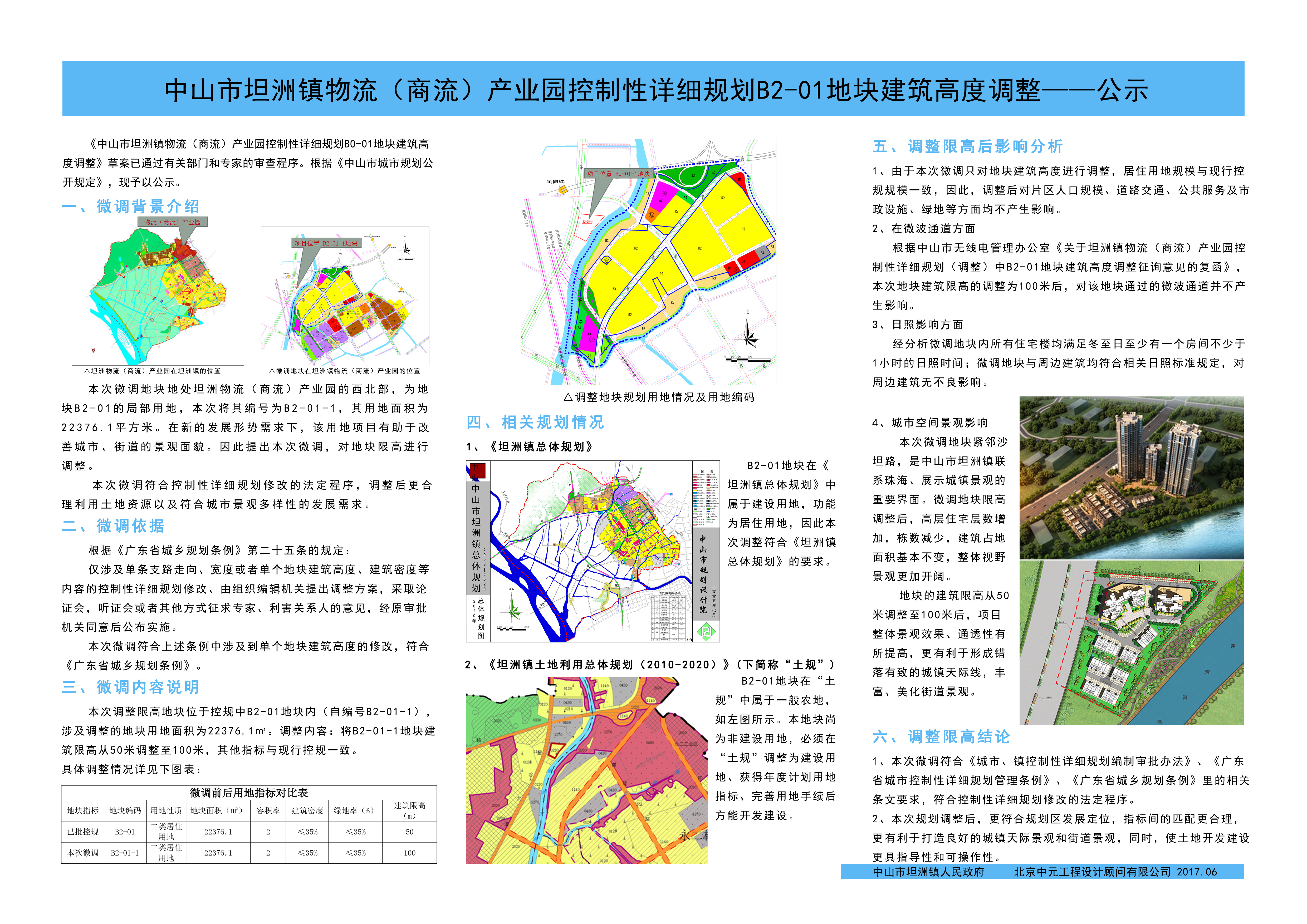 《中山市坦洲镇物流(商流)产业园控制性详细规划调整》B2-01地块建筑高度调整方案已于2017年6月8日通过了专家论证程序。根据《中山市城市规划公开规定》,现予以公示。