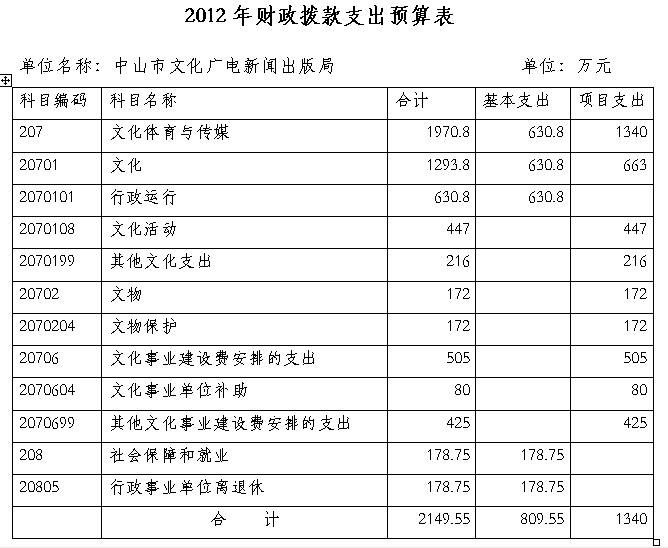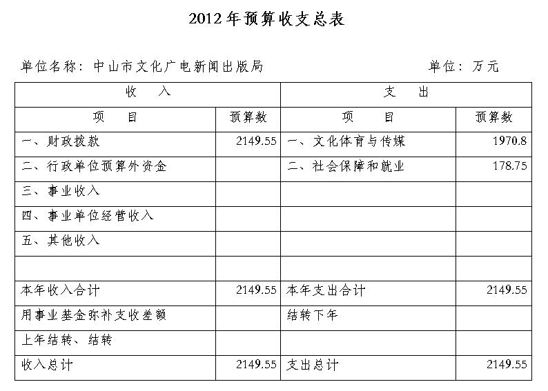 中山市文化广电新闻出版局2012年部门预算情况