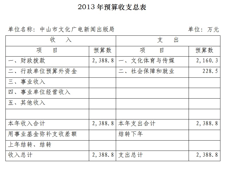 附表:1、2013年预算收支总表