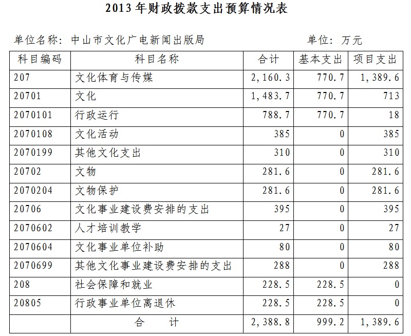 2、2013年财政拨款支出预算情况表
