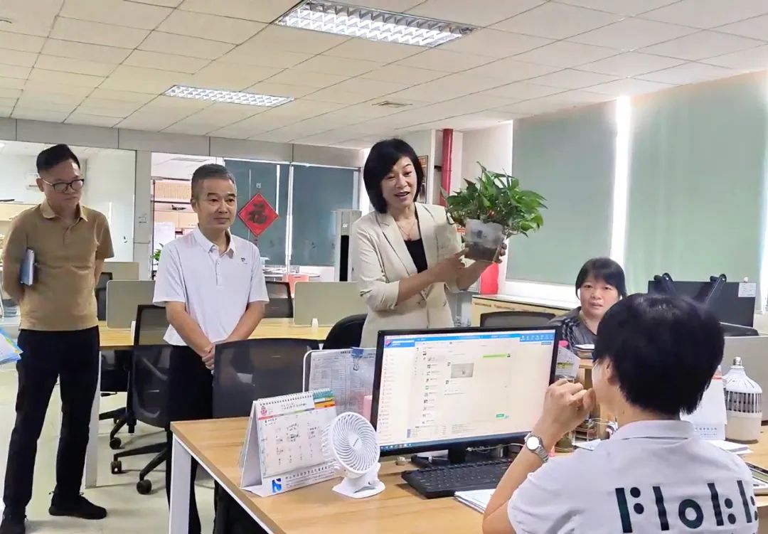 党工委副书记、办事处主任袁展仪,党工委委员陈恒带队深入辖区规上企业走访调研,强化落实疫情防控相关要求。“像这个水养植物如果不勤换水保持清洁,就很容易孳生蚊虫,大家一定要引起重视。”走访中,袁展仪一行细致检查企业办公区域和公共区域环境,重点排查积水隐患点、水培植物清洁状况及卫生死角,向企业员工科普防蚊灭蚊小知识,强调要高度重视并切实做好日常办公区域的疫情防控措施,及时清理各类积水,保持公共区域环境的整洁卫生,清除病媒孳生地,筑牢疫情防控防线。