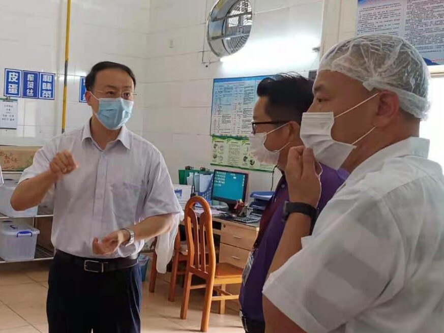 ▲市市场监管局局长高培鹏指导学校落实食品安全管理制度