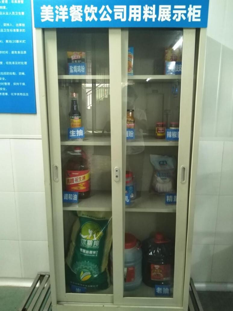 ▲美洋餐饮公司用于加工学生餐的食材样品展示