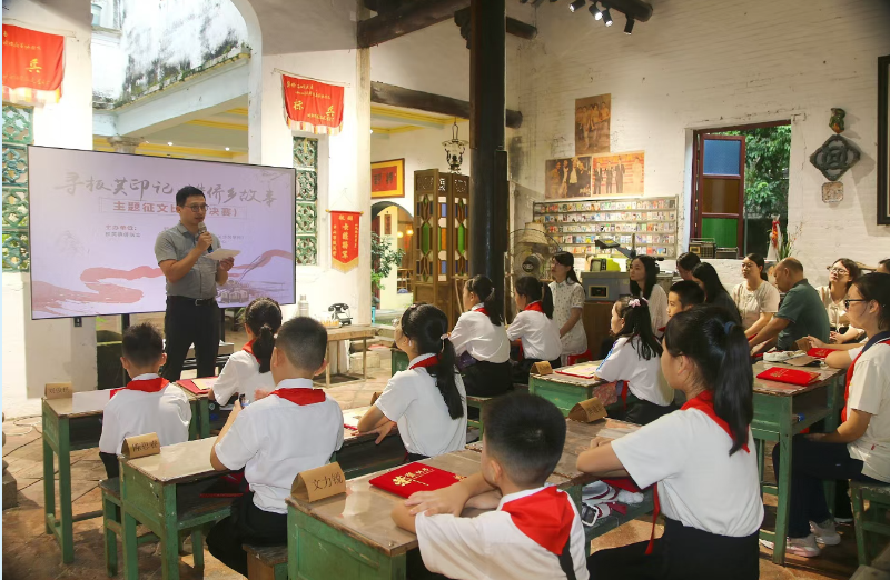 比赛复审阶段采用了公开课的形式,参赛者带领现场观众穿越回当年的沙冈学校,探索华侨华人在板芙留下的足迹,让观众能够近距离地感受到作品的魅力,也让同学们有机会通过讲解和朗读,将自己的创作理念和故事背景传递给观众。