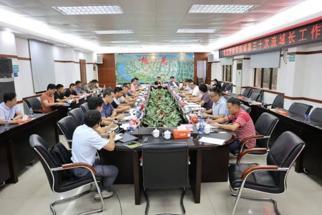 在随后召开的第30次流域长调度会上,有关部门、单位汇报了活水循环、控源截污、污水厂(三期)扩建工程等水污染治理工作进展情况;研究了关于未达标水体综合整治工程涉及受损房屋修复等相关方案,并提出优化意见和建议。副镇长梁仲平传达了《中山市非中心组团未达标水体整治工作会议》(2023年8月11日)会议精神,要求各部门、各村(社区)要协同作战,通力合作,久久为功,扎实推进水污染治理工作。