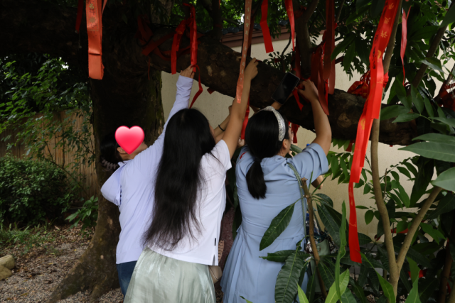 随后,青年们在导游的带领下游览“鲤溪月老街”,“鲤溪月老街”作为板芙镇里溪村的特色文旅项目,以鲤鱼为文化符号,融合爱情元素,集浪漫、文化、娱乐于一体,青年们在徒步游玩中与心仪对象深入交流、感情逐渐升温。在许愿树下,大家将象征着爱情和期待的红丝带系上树枝,传达对彼此美好的祝愿。