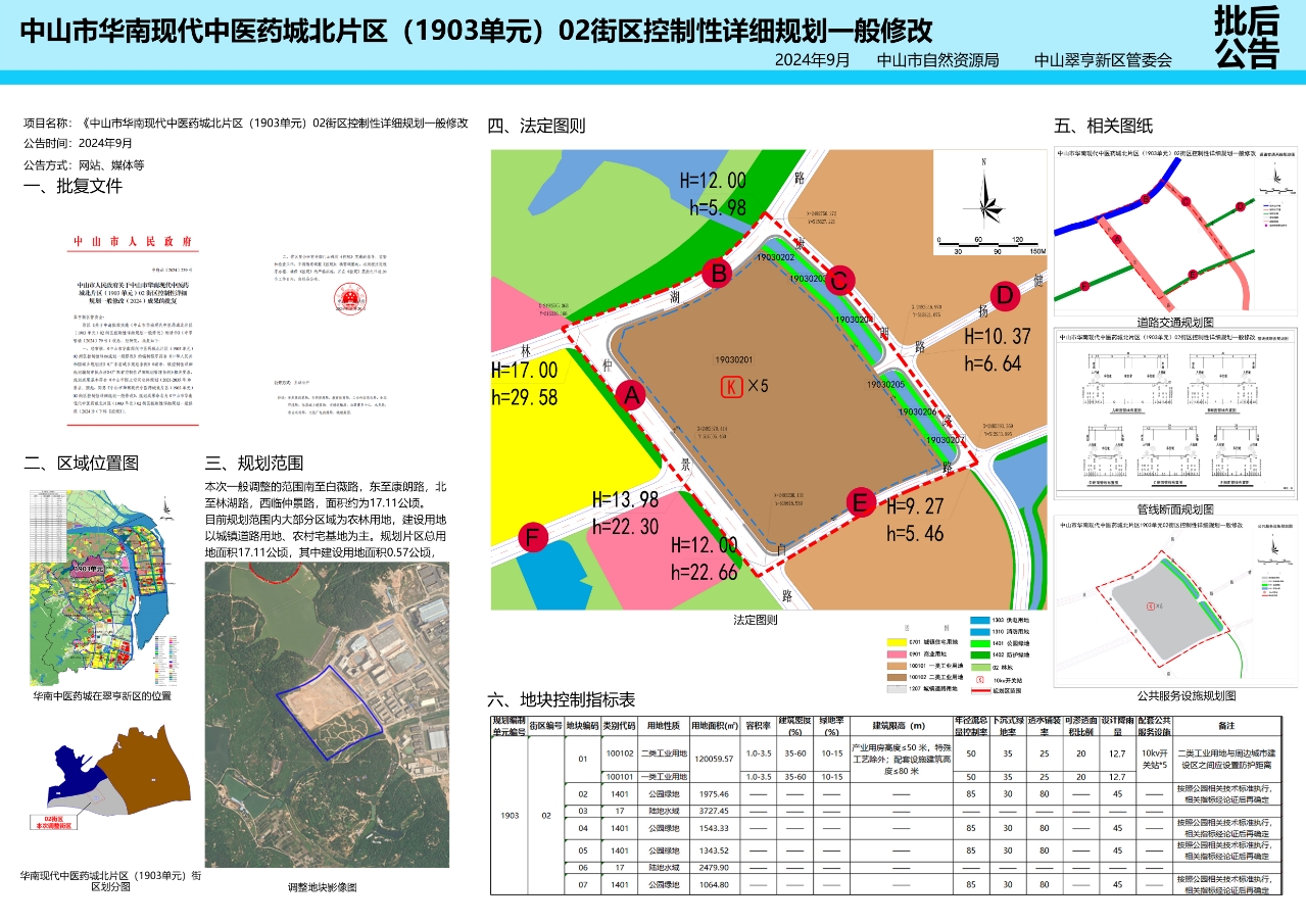 关于公布实施《中山市华南现代中医药城北片区(1903单元)02街区控制性详细规划一般修改(2024)》的公告
