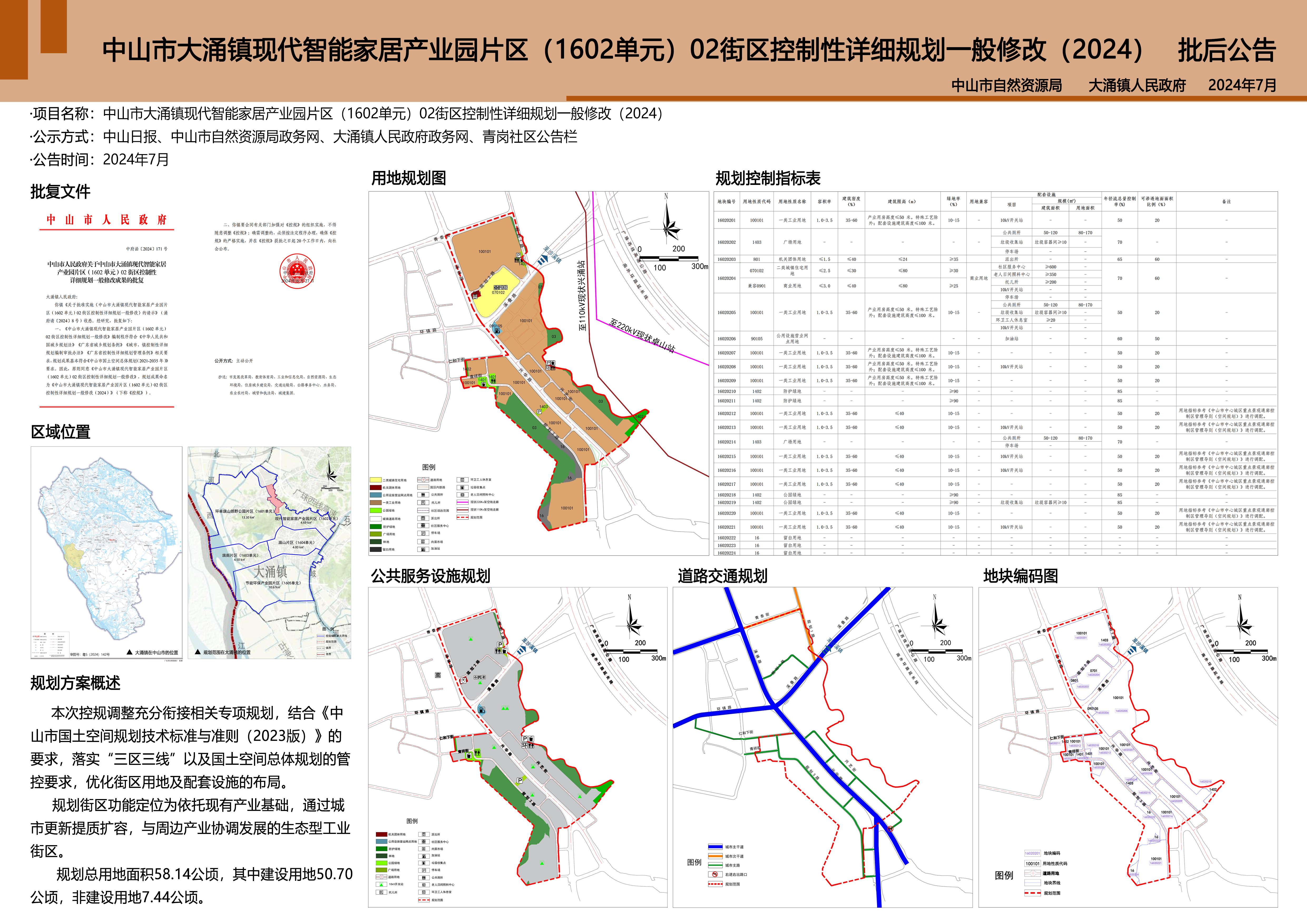 《中山市大涌镇现代智能家居产业园片区(1602单元)02街区控制性详细规划一般修改(2024)》于2024年6月27日经51黑料 批准。现根据《中华人民共和国城乡规划法》《广东省城乡规划条例》等相关法律、法规要求予以成果公布。有关规划成果信息可在中山市自然资源局政务网、中山市大涌镇人民政府政务网和大涌镇青岗社区公告栏查阅。