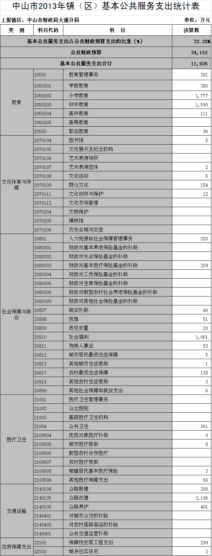 2013年全镇公共财政预算支出3.42亿元(含上级补助公共财政支出,下同),完成预算支出的99%,具体完成情况如下: