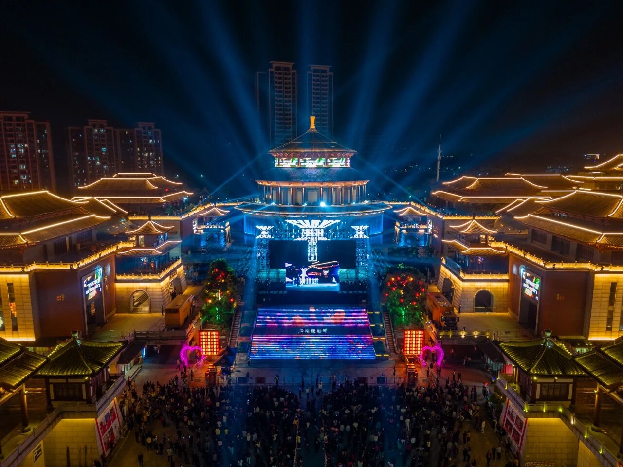 本次活动由沙溪镇、大涌镇联合中国服装协会、广东省服装服饰行业协会共同举办,以“百千万工程”为主题,旨在呈现新征程上中山“强、美、治”城乡融合新画卷,进一步激活传统产业转型升级动力。夜幕下的红博城灯火璀璨、人头攒动。随着古韵新潮红博城时尚服装秀精彩上演,中山服装的传统韵味与现代潮流在此交融碰撞,上千架无人机同步升空绘就光影画卷,为现场观众带来了一场视觉盛宴。