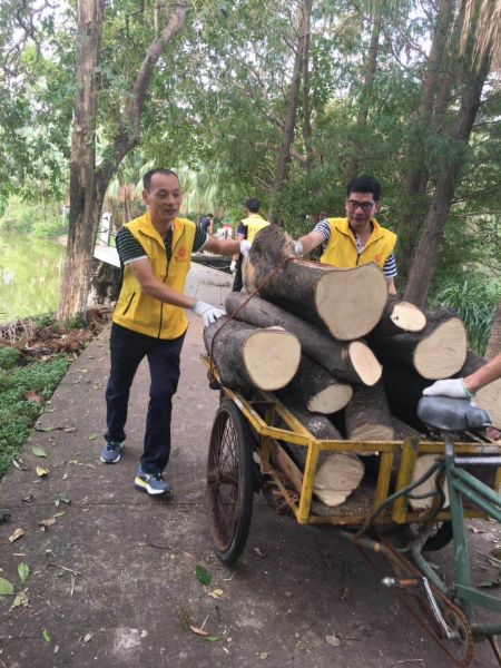 在市委、市政府的正确领导、指挥和科学调度下,全市上下通力合作,奋力防御“山竹”台风,迅速开展灾后恢复重建工作,目前我市基本恢复了正常的生活生产秩序。由于台风“山竹”破坏力大,我市市属公园受灾严重,据市园林处初步统计,市属公园共倒伏树木1900余株,折断652株,其中受灾最严重的有紫马岭公园、逸仙湖公园、名树园等。为加快恢复“山竹”台风灾害损坏的城市市容市貌和生活环境秩序,让全市市民欢度幸福和美中秋佳节,我局党员干部积极响应,踊跃报名参与市直机关工委组织的灾后大扫除大清理行动。根据统一部署,9月21日上午,我局郑伟红副局长一早即带领4位同志来到逸仙湖公园。在公园内,我局5位党员同志联同市人大办、市科技局等部门的同志迅速投入到清理工作当中,双手抬、肩膀扛、用车拉,全力支援公园作业人员清障被刮倒的树木、垃圾及其他杂物,并对相关公共活动场所进行清扫、抹洗,为逸仙湖公园早日全园开放创造了条件。