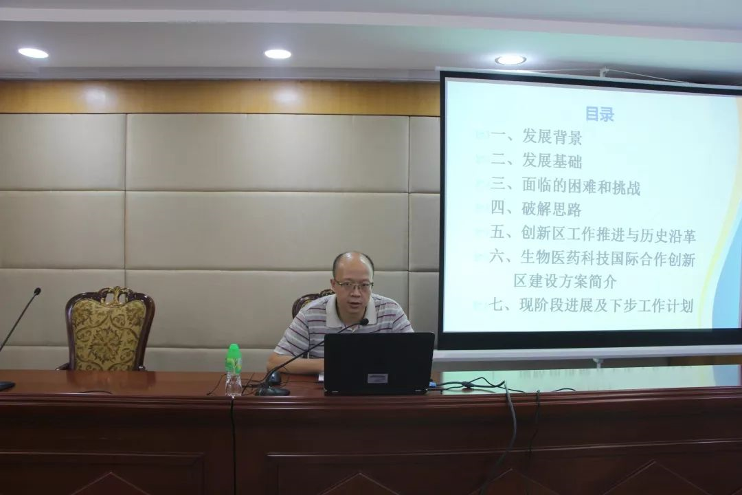 产业发展科科长陈靖刚就“建设生物医药科技国际合作创新区,推动中山健康医药产业高质量发展”主题与大家进行分享,引用详实的数据资料,结合生物医药科技国际合作创新区建设方案,深刻阐述我市健康医药产业发展的背景和基础、当前发展所面临的困难和挑战、现阶段工作进展及下一步工作计划。