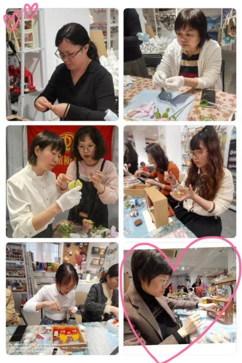 本次活动有扭扭棒花束、永生花装饰画、抱抱桶、家具微缩场景橱窗、压花台灯、透明窗场景橱窗等各式各样的手工材料,女职工们选择自己感兴趣的手工项目,在老师的耐心指导下,享受着自己动手创作的乐趣。在轻松和愉悦的氛围中,在灵感与创意的浇灌下,一个个精致的手工作品完成了,大家互相分享彼此的创作成果,拍照留念,手工室内欢声笑语不断。