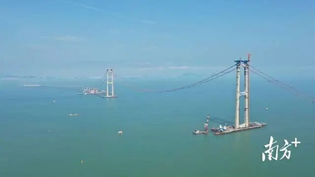 近日,深中通道伶仃洋大桥猫道全线贯通。石磊 鲁力 袁佩如 岳路建 摄