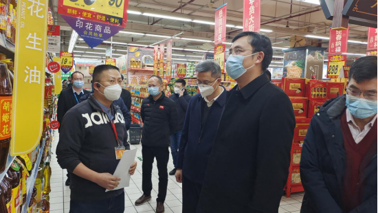 1月18日,市委副秘书长、市发展改革局党组书记、局长尹明同志,市纪委监委驻市财政局纪检监察组林仁崇组长及市发展改革局党组成员、副局长梁战文带队到农副产品项目库单位检查保供稳价工作落实情况。